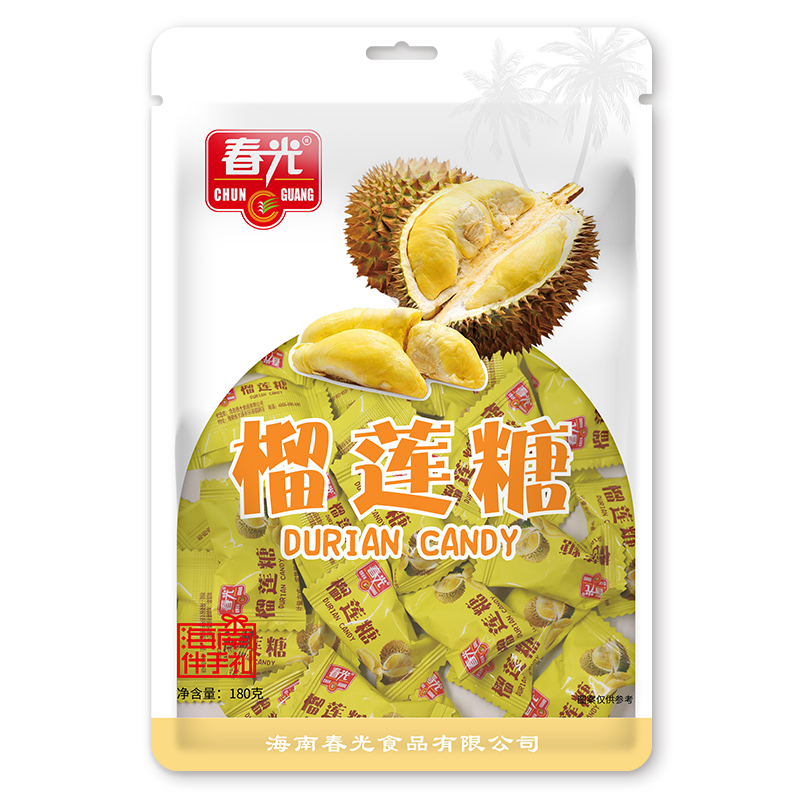 白砂糖、麥芽糖漿、椰子原汁、榴蓮粉、食品添加劑(大豆磷脂、單,雙甘油脂肪酸酯、蔗糖脂肪酸酯、碳酸氫鈉)、食用香精、食用鹽