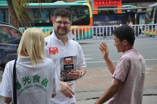 春光食品國際貿易部的小譚全程參與了本次活動,作為翻譯談起這次活動,小譚說:“很多市民說的最多的就是‘謝謝’,春光食品對于海南人來說非常熟悉,他們雖然不知道學員們在講什么,但是第一反應都會說‘春光?吃過了!很棒!’。”