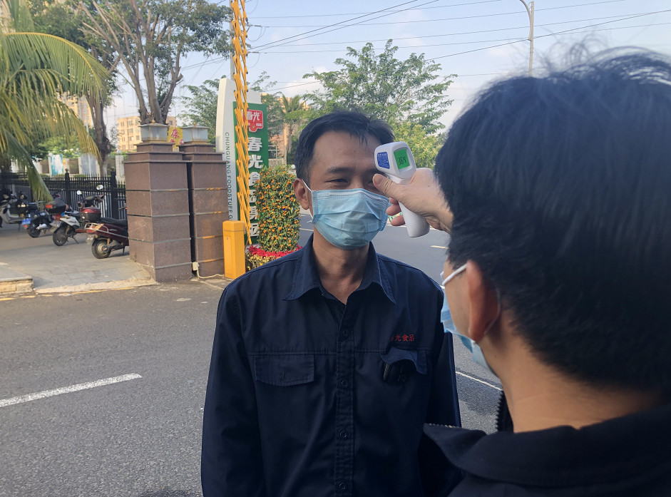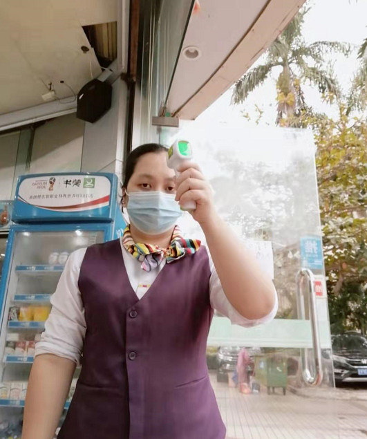 在總公司,每天對辦公地點進行全面消毒,對出入員工進行體溫測量。