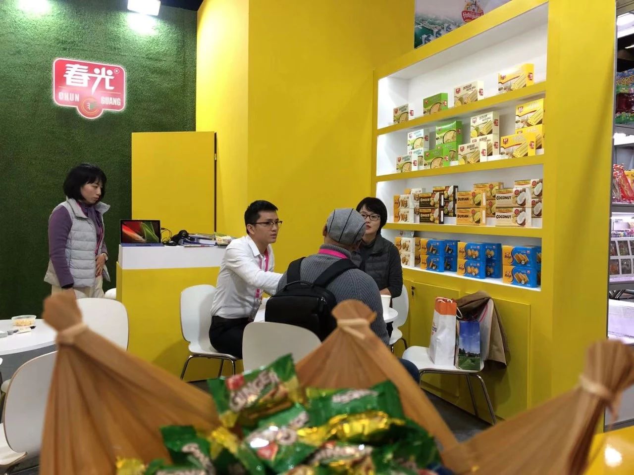 在本屆展會上,最炙手可熱的“明星”當屬在年前上市的小椰子棒棒糖,“這個小椰子棒棒糖很出名,我在湖南衛(wèi)視跨年演唱會上看見過,過年有買一些送給我們這兒的中國朋友,他們都很喜歡?!眮碜缘聡募钨e保羅先生一見如故地說道?!斑@款小椰子棒棒糖一共有番石榴味、可可味、原味三種口味......”現(xiàn)場工作人員向嘉賓和采購商們熱情地介紹到。春光小椰子棒棒糖曾在湖南衛(wèi)視跨年演唱會以及春節(jié)聯(lián)歡晚會上被熱推,實現(xiàn)了消費者口碑和銷量雙贏。這一次首度亮相國際舞臺,春光小椰子棒棒糖憑借環(huán)保紙棒包裝、趣味圖案與獨具特色的海南椰味贏得現(xiàn)場一片好評。