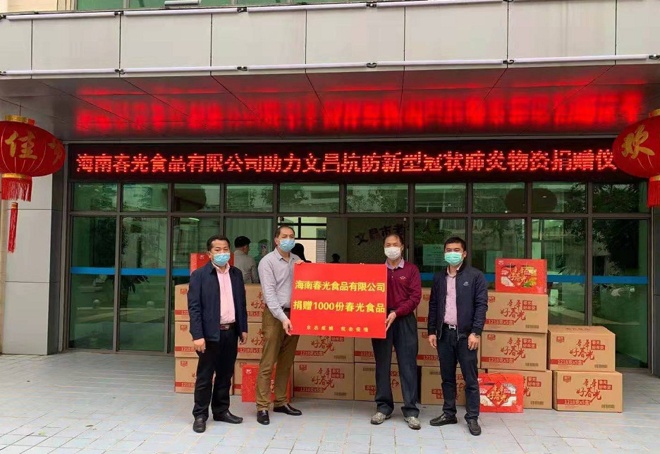 2月5日,海南春光食品向文昌市一線防疫醫(yī)務(wù)人員和集中醫(yī)學(xué)觀察點共捐贈了1000份食品,助力文昌市疫情防控工作。